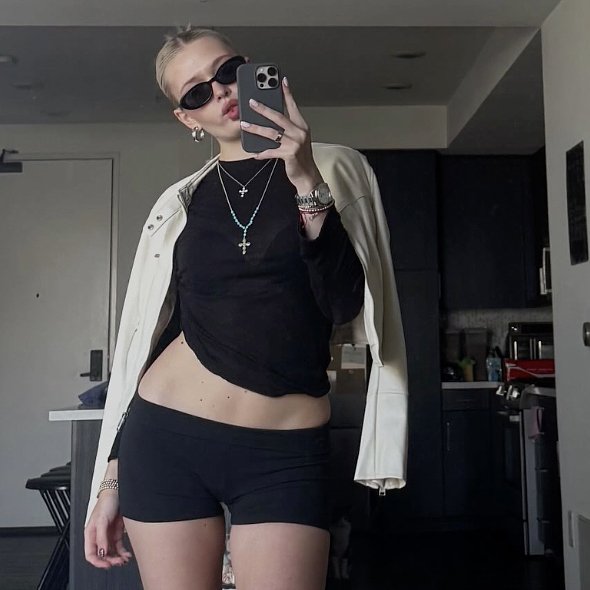 Старшей дочери певицы 24 года. Для новой публикации девушка сделала селфи в зеркале, надев темный наряд.